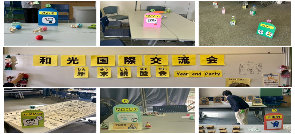 学習者26名が6グループに分かれて、日本語を使ったコーナー(○×ゲーム、カードかるた、早口ことば)と、日本のあそびコーナー(わなげ、手裏剣投げ、けん玉)で遊びました。